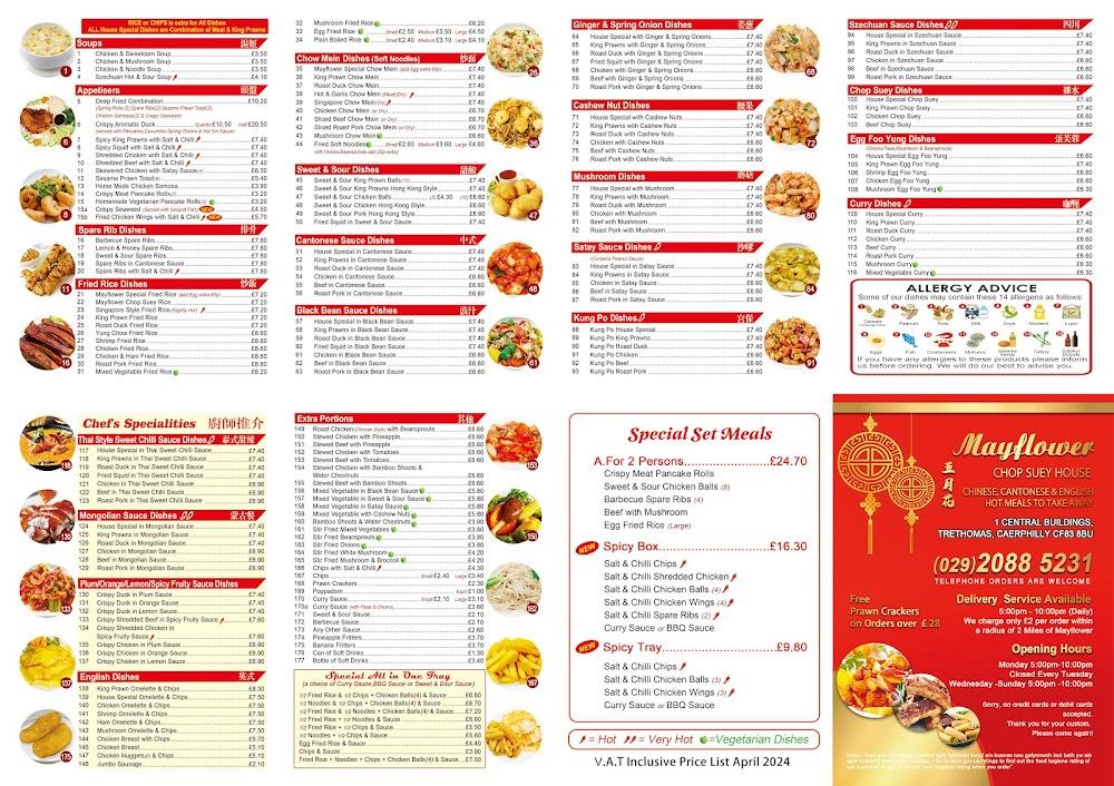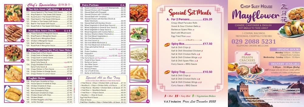 Nestled in the heart of Trethomas at 1, Central Buildings, Mayflower Chop Suey House stands out as a go-to destination for locals seeking flavorful Chinese cuisine. The friendly staff creates a welcoming environment that keeps patrons returning. The casual atmosphere is perfect for families or anyone looking for a satisfying meal. Plus, the establishment strictly adheres to health protocols, ensuring a clean dining experience amid current safety concerns. With free street parking and telephone orders welcomed, it's never been easier to enjoy a delightful meal. This place has quickly become a staple in the community, valued not just for its food, but also for the genuine friendliness of the team. What I find particularly charming is how it serves not just food, but a shared experience, especially during busy evenings when the aroma of delicious dishes wafts throughout the building, pulling in hungry customers and creating a vibrant hub of activity.